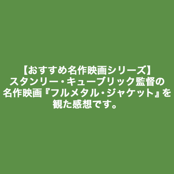 【おすすめ名作映画シリーズ】スタンリー・キューブリック監督の名作映画『フルメタル・ジャケット』を観た感想です。