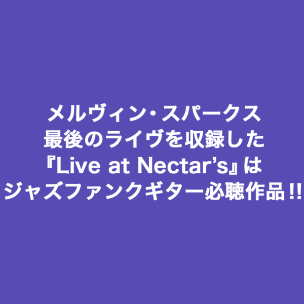 メルヴィン・スパークス最後のライヴを収録した『Live at Nectar’s』はジャズファンクギター必聴作品‼